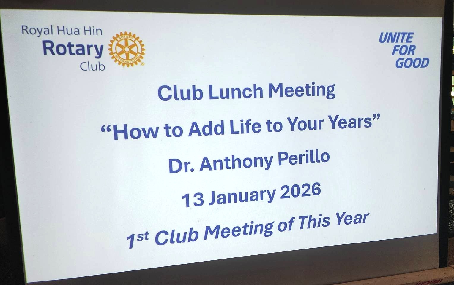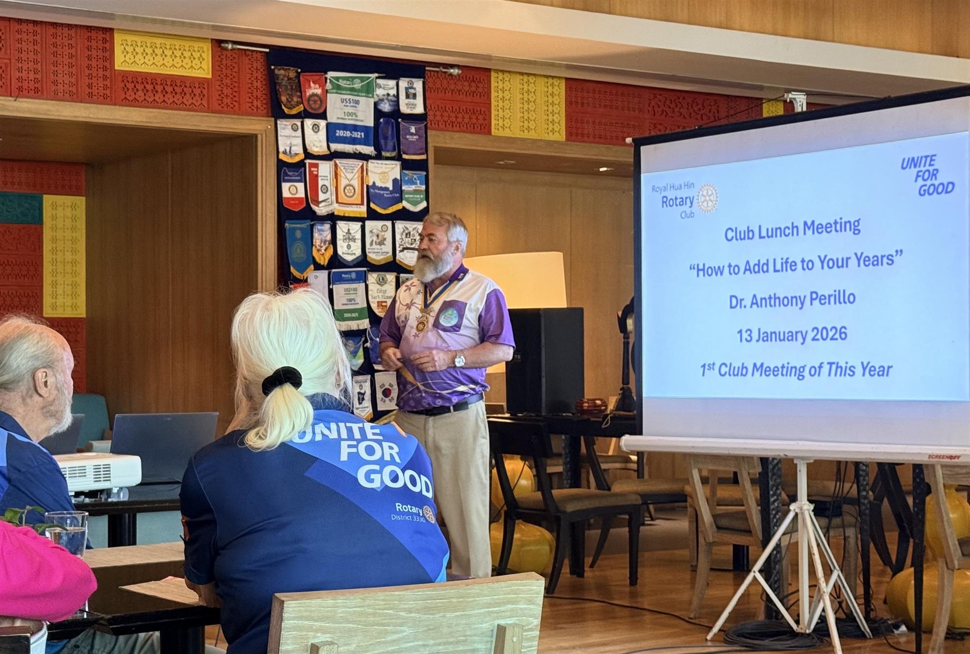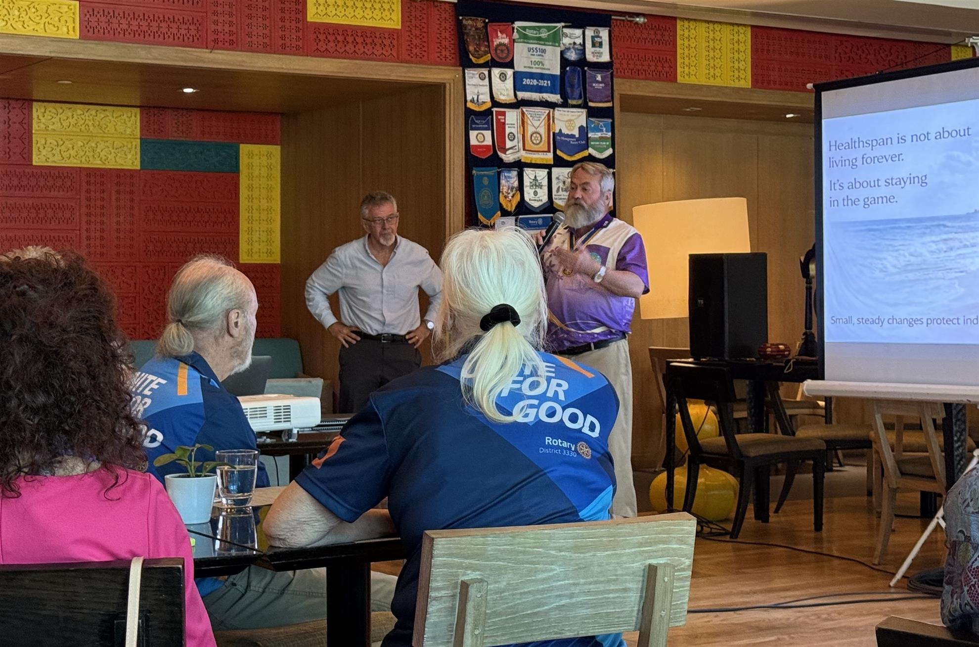 Our club welcomed special guest speaker Dr. Anthony Perillo, a long-time health and wellness executive and former Chief Wellness Officer at Chiva-Som, for an engaging talk on healthspan—the years of life lived with energy, independence, and purpose.