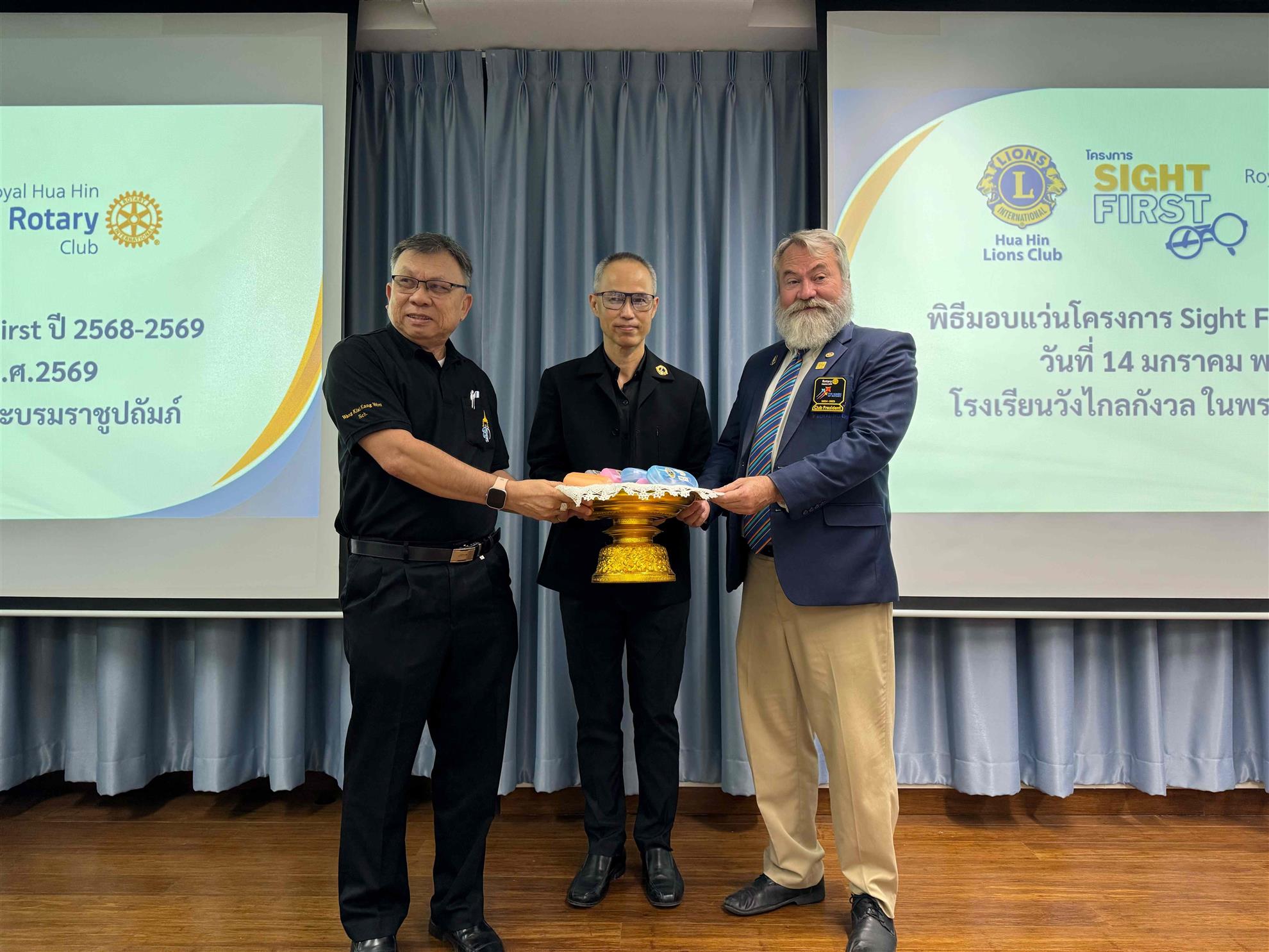 Our Rotarians attended the handover ceremony for our donation of new prescription eyeglasses for 70 children at Wangklaikangwon School on 14 January. This is our joint-project with the Hua Hin Lions Club’s “Sight First” initiative that provides eyeglasses with vision tests at Time Optic Hua Hin.