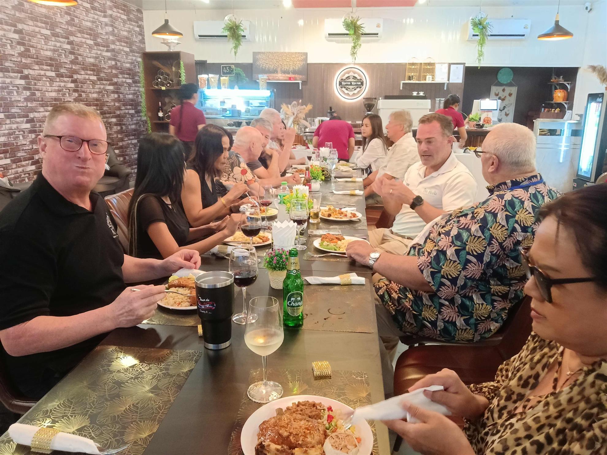 Our Fellowship Night on 5 August was another great gathering of Rotarians and friends at the new Koe Kaffee Kultur Restaurant, and it was good to have our old friend Past President Walter of the Rotary Club of Patong Beach join us again.