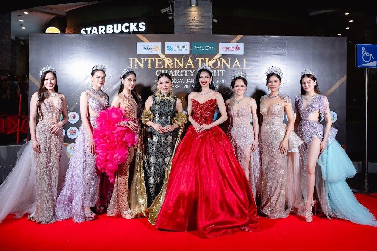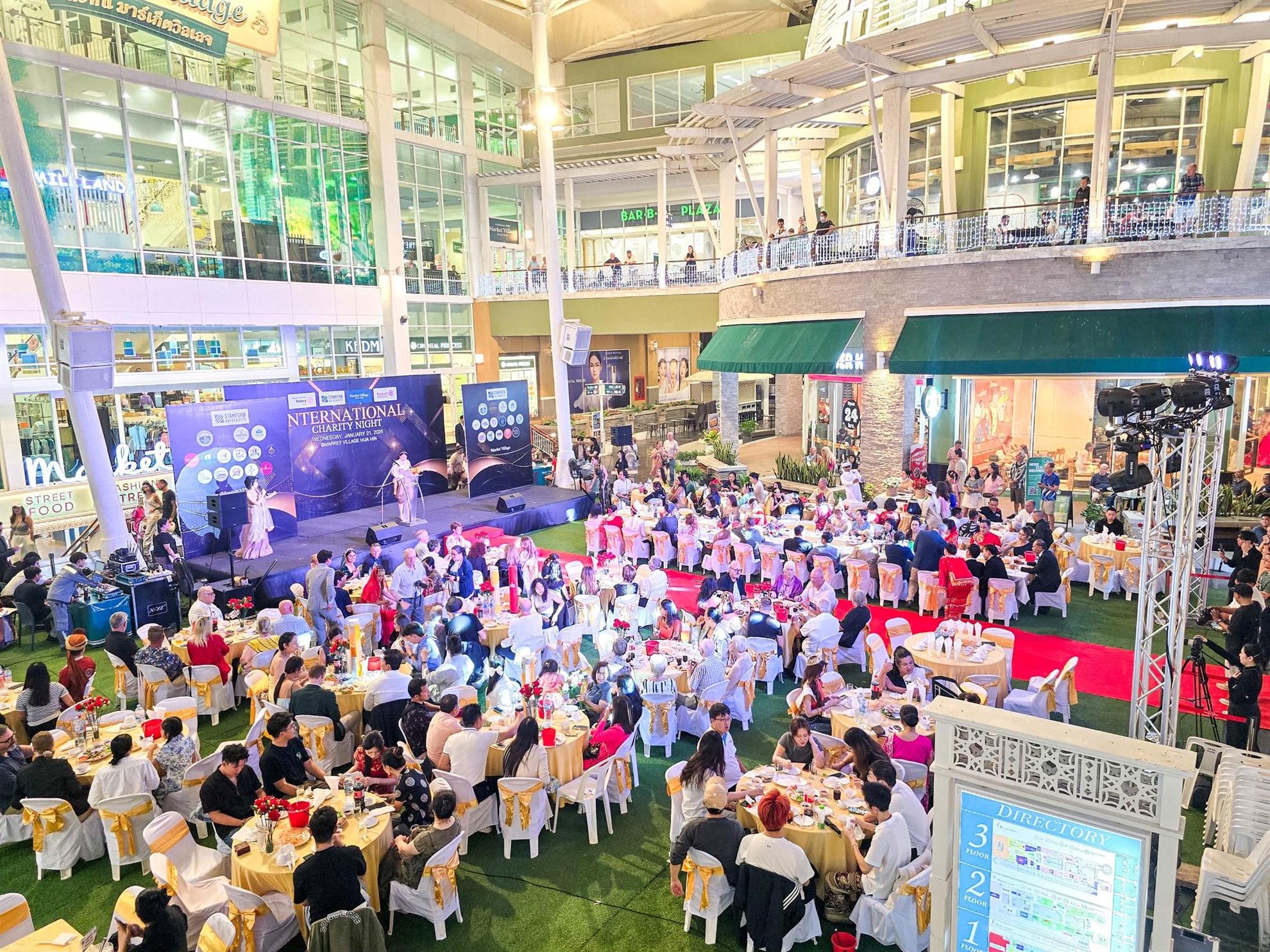 The Rotaractors of Stamford International University and members of the Student Council organized another one of their International Charity Nights for community engagement and inclusion at Market Village Shopping Mall on 21 January. With sponsorship support from the Rotary Club of Royal Hua Hin, the evening was fully booked and the guests were entertained by exciting performances of song and dance as well as a spectacular fashion runway by Miss Thailand International finalists and the Miss Prachuap Khirikhan beauty queens.