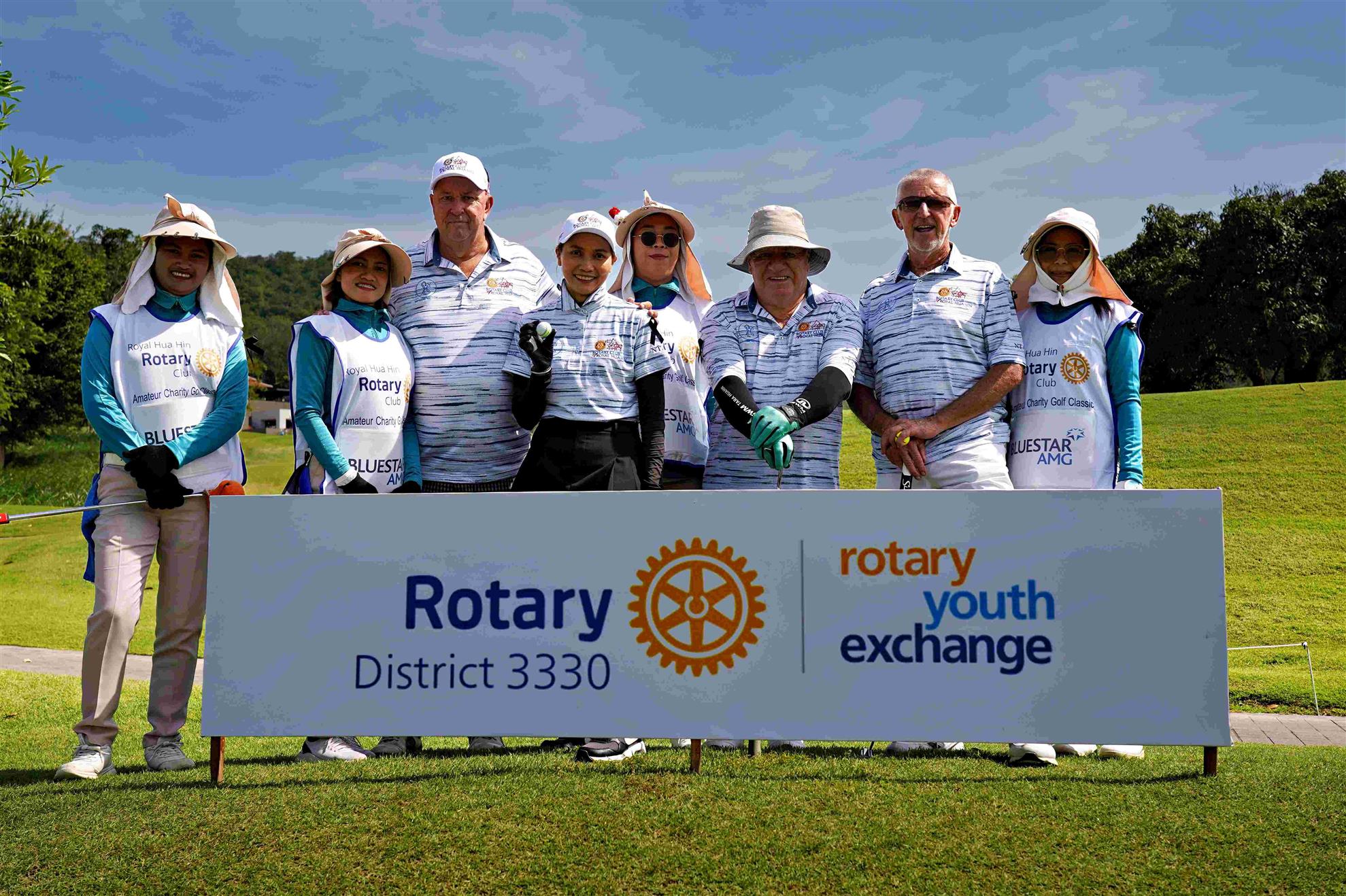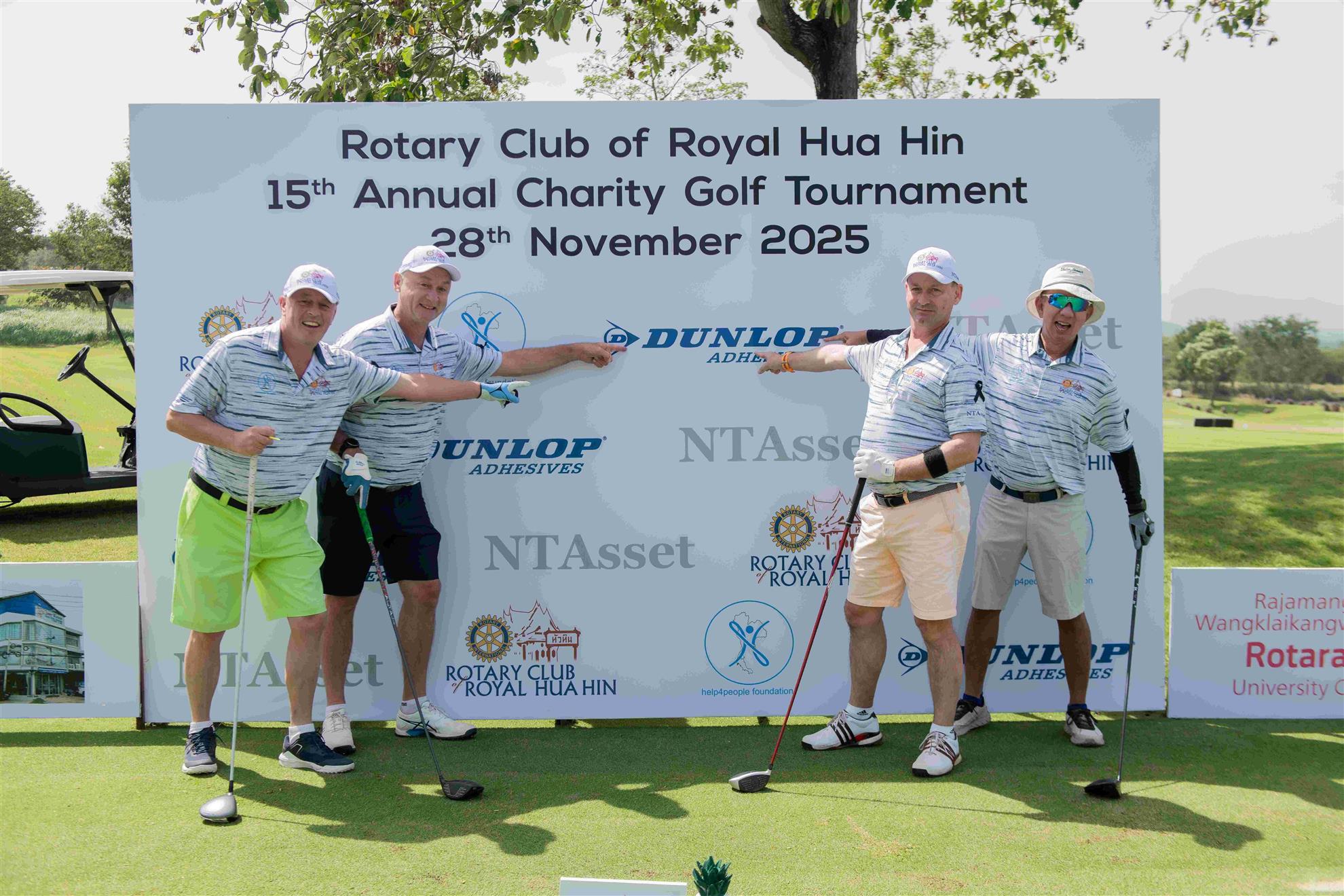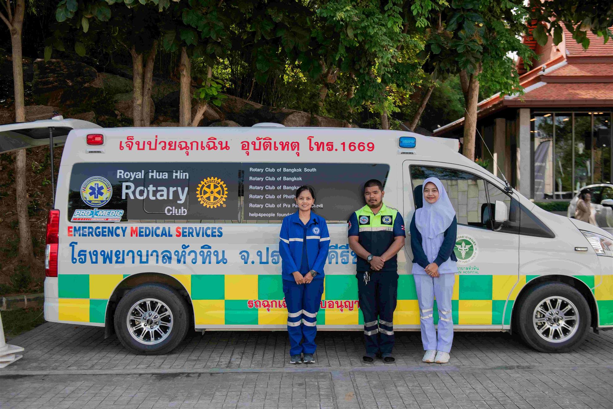 A total of 29 golf teams participated in the tournament and the top teams this year were IndiSwiss in 1st place, Mixed Nations in 2nd place, and DaNo Thai in 3rd place. The medical professionals of Hua Hin Hospital stood by offering their support with the new Rotary ambulance that we purchased last year.
