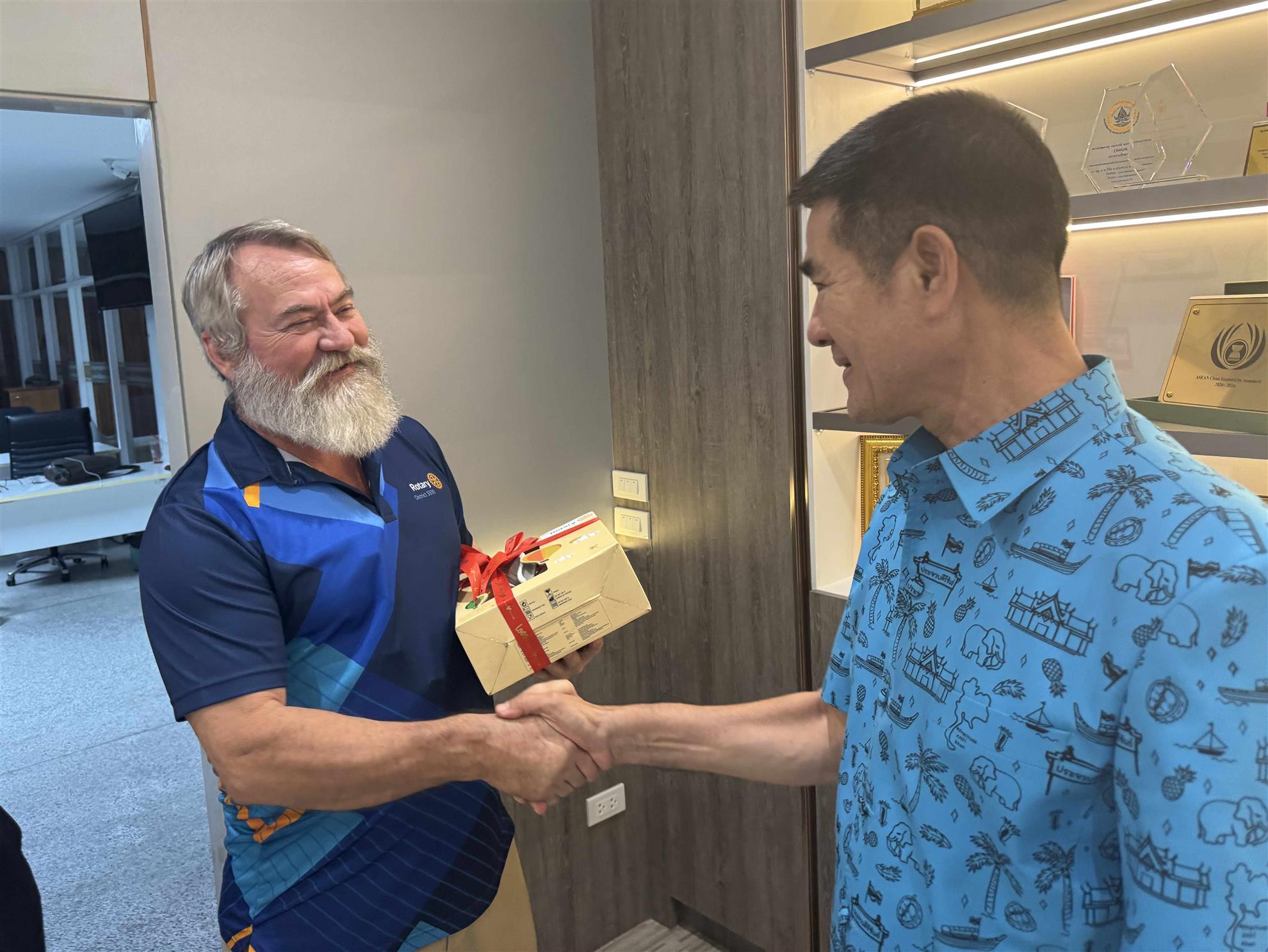 The Rotary Club of Royal Hua Hin met with the mayor of Hua Hin, Mr. Nopporn Wutthikul to congratulate him on the re-election of his administration and discuss our further collaboration on community service projects for the underprivileged and disadvantaged in the community, namely our Children’s Water Safety & Drowning Prevention program and donations of lifesaving medical equipment for Hua Hin Hospital.