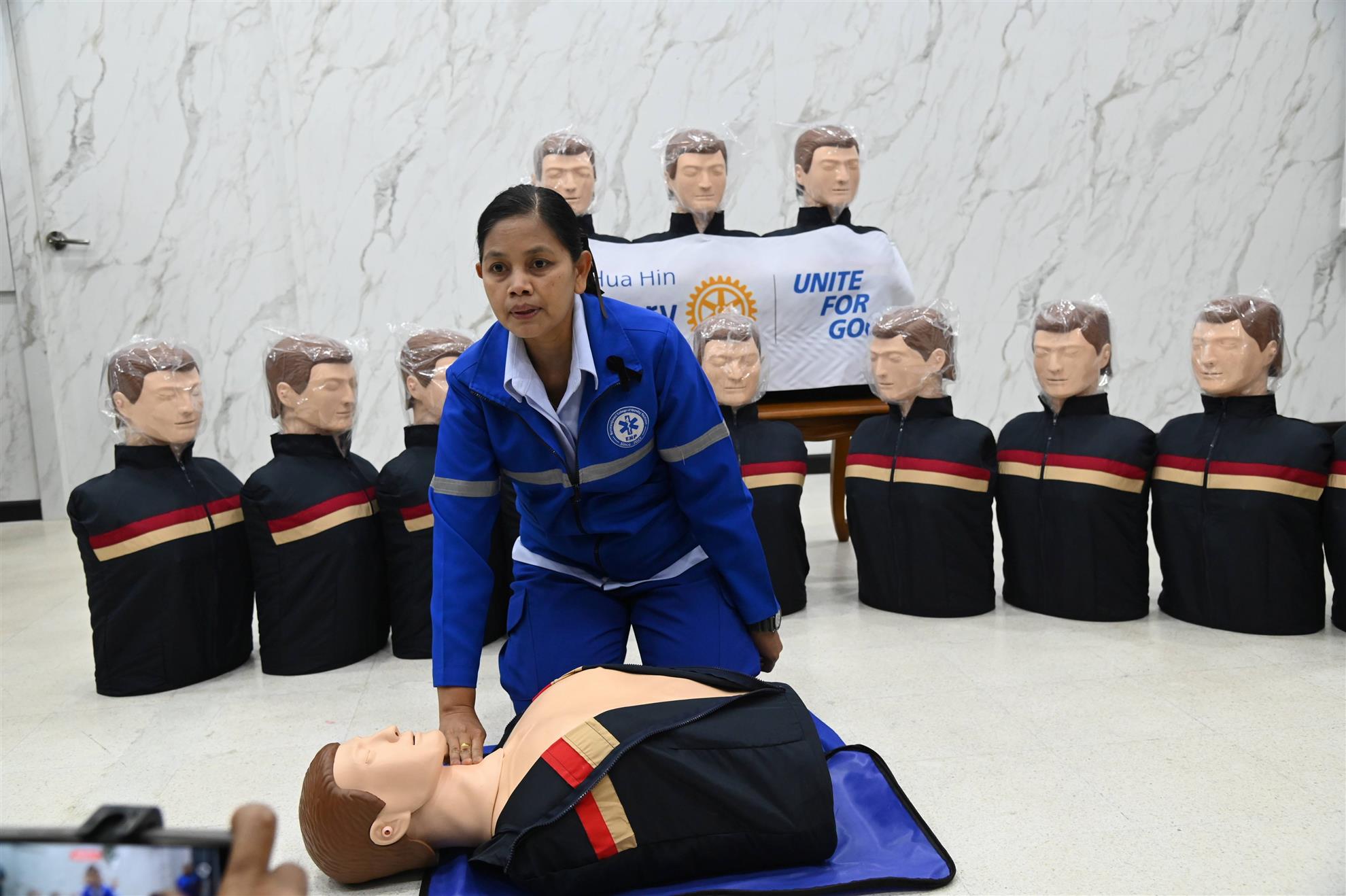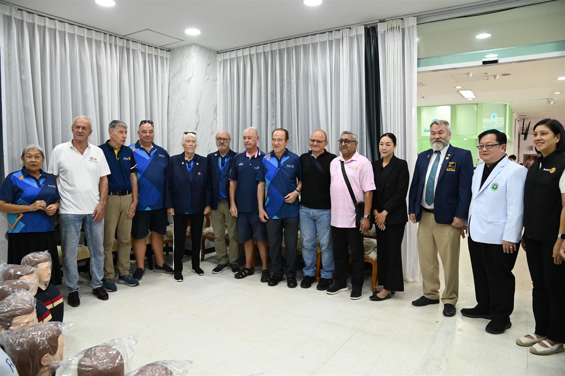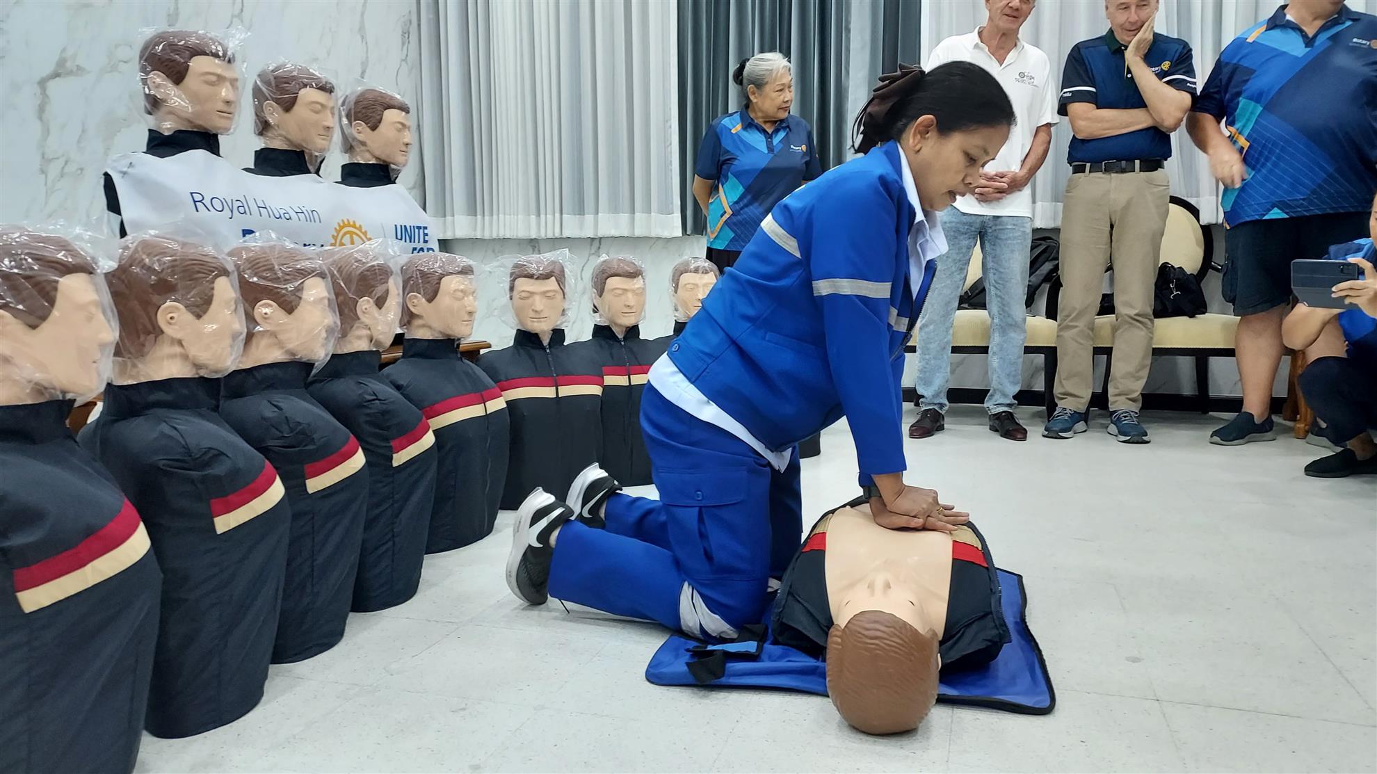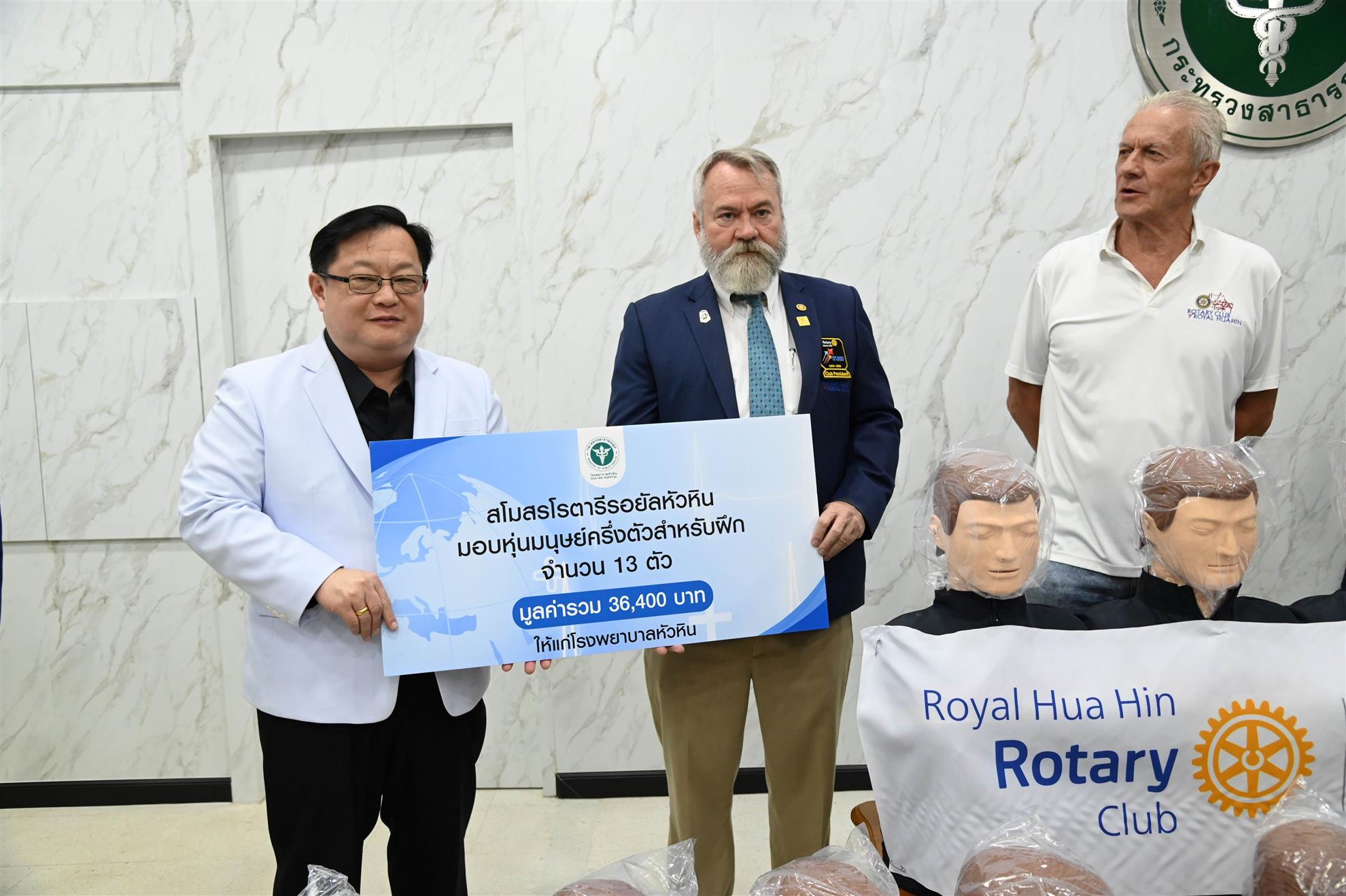 In another joint project with the Rotary Club of Bangkok South, we handed over our donation of 13 new manikins for CPR training to hospital director Dr. Jittarat and the medical professionals at Hua Hin Hospital on 27 November. The hospital formerly had 12 manikins and their CPR trainers often teach in groups of 50 people, so our contribution brings it to 25 manikins in total, enabling two trainees per manikin.