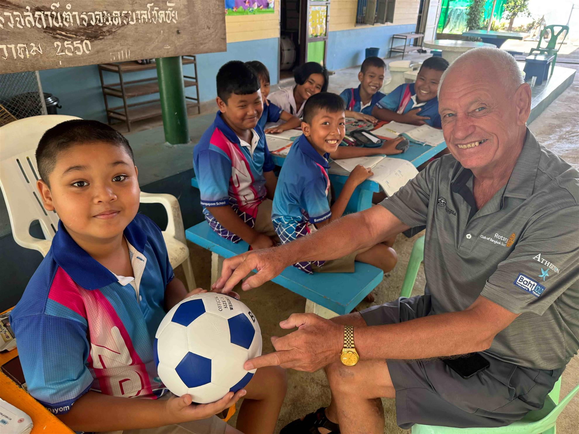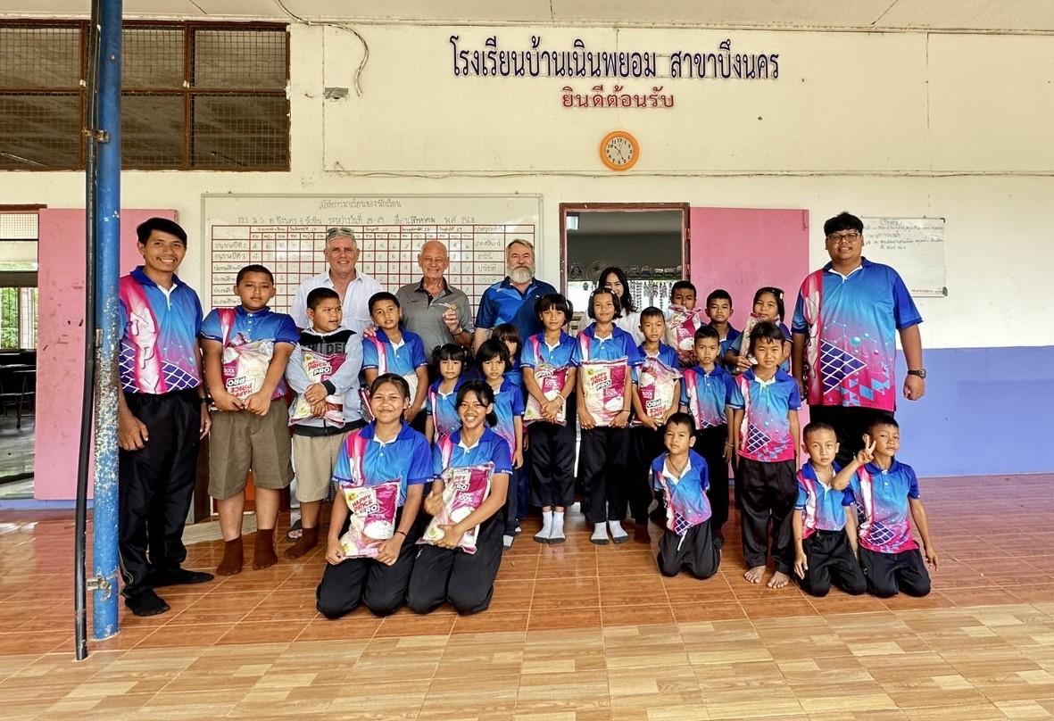 We have an ongoing relationship with Bueng Nakhon School and provided sporting equipment, library books and other educational supplies for their students last year. The total 100 kilograms of rice was sponsored by our member Rotarian Andrew’s family to augment the food supplies of both schools.