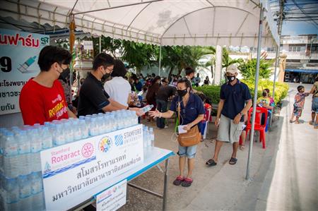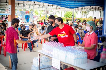 On Friday 8th October Rotaractor's from Stamford International University sponsored a vaccination day at Cha-Am hospital by purchasing 2,500 bottle of water.